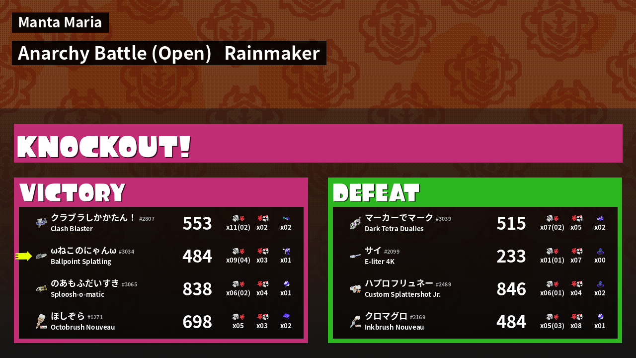 | Mode | Rainmaker - Anarchy Battle (Open) | ||