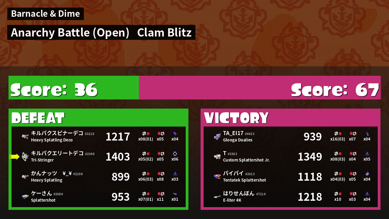 | Mode | Clam Blitz - Anarchy Battle (Open) | ||
