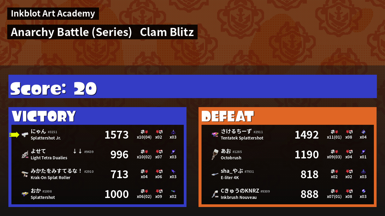 | Mode | Clam Blitz - Anarchy Battle (Series) | ||