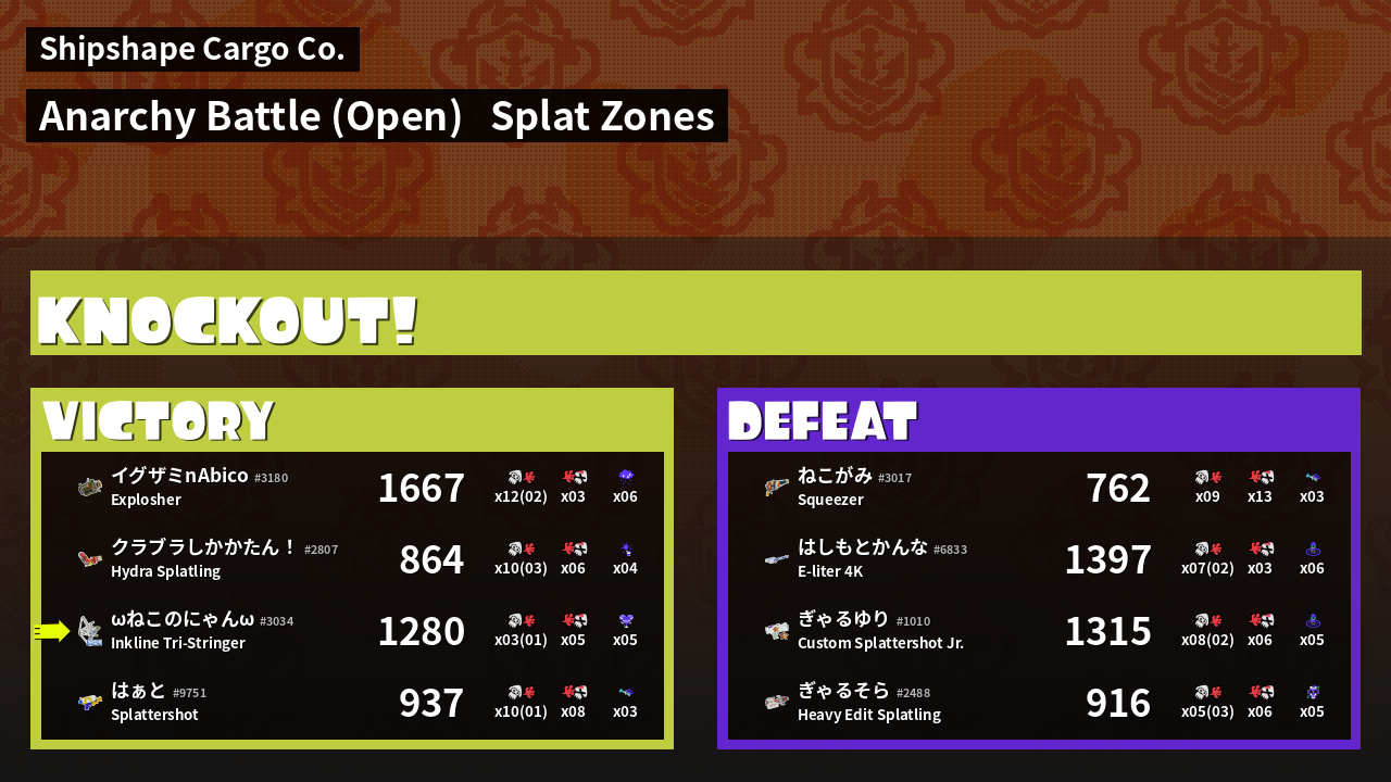 | Mode | Splat Zones - Anarchy Battle (Open) | ||