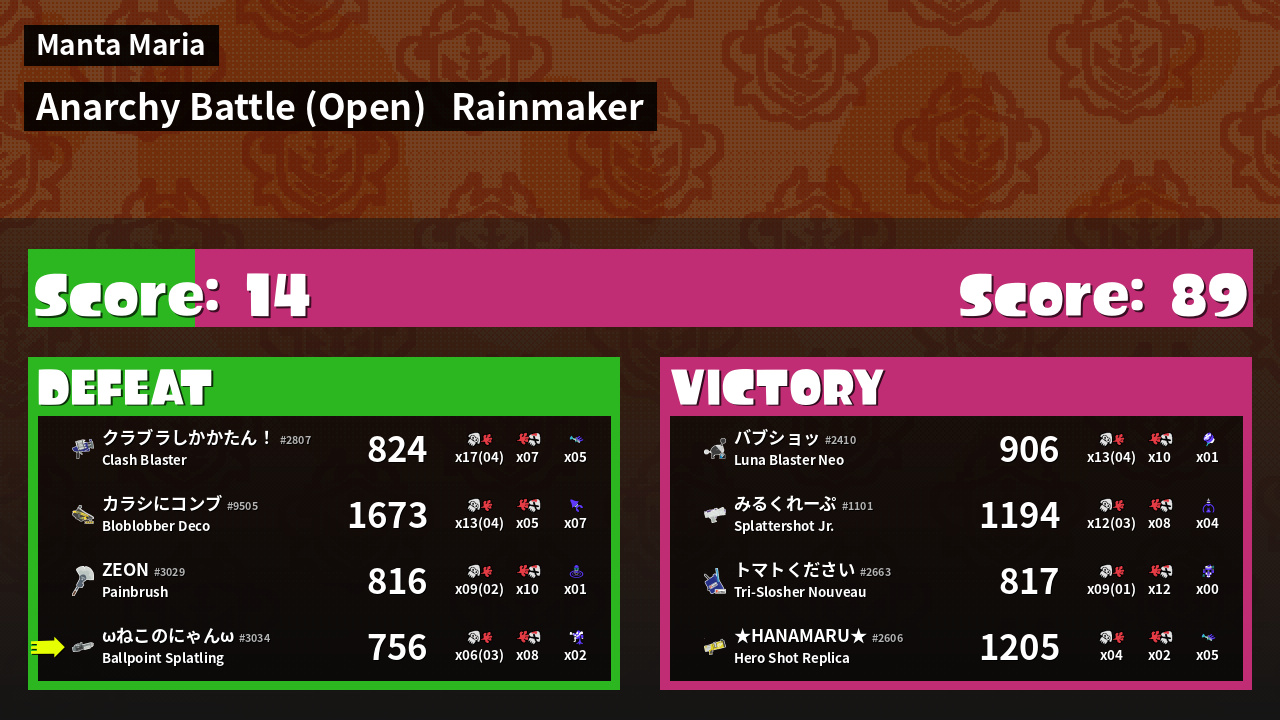 | Mode | Rainmaker - Anarchy Battle (Open) | ||