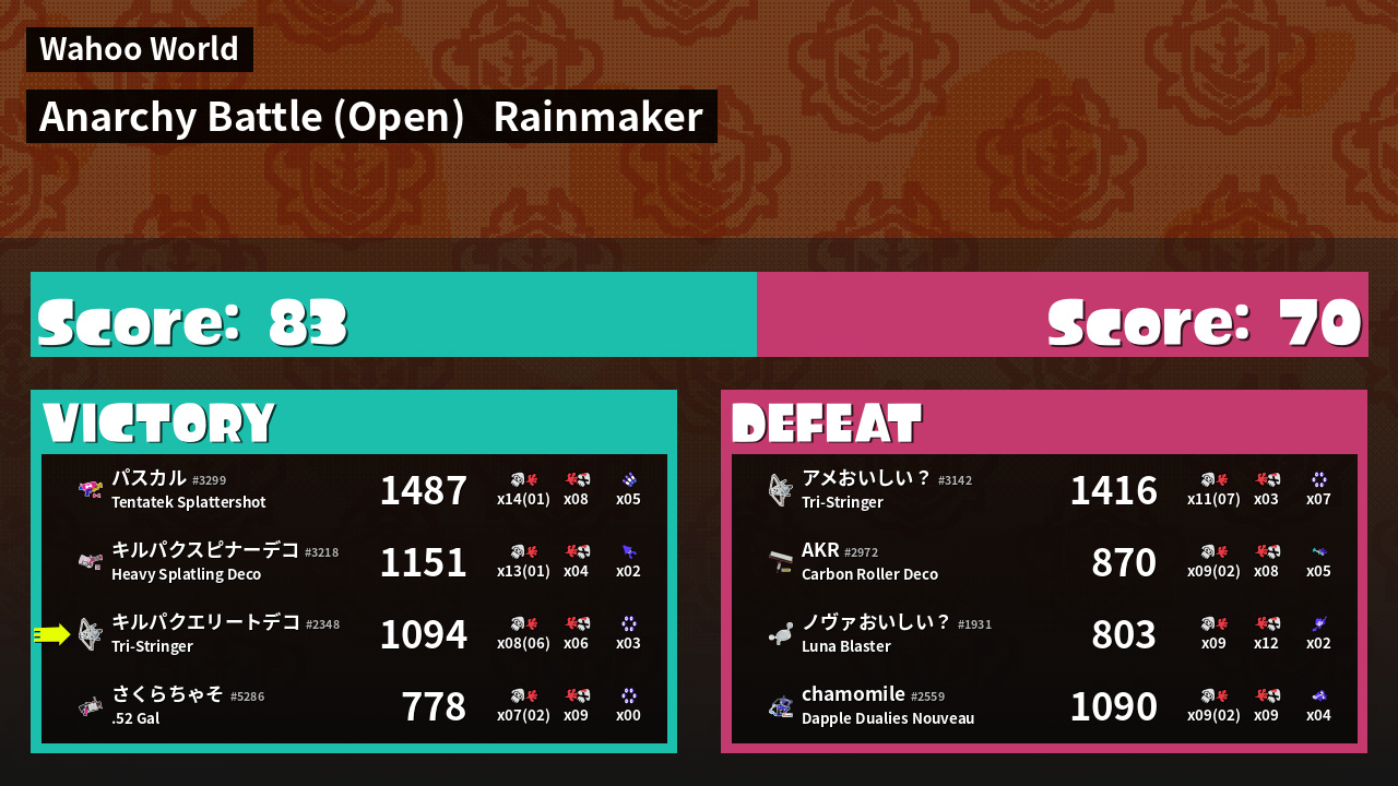 | Mode | Rainmaker - Anarchy Battle (Open) | ||