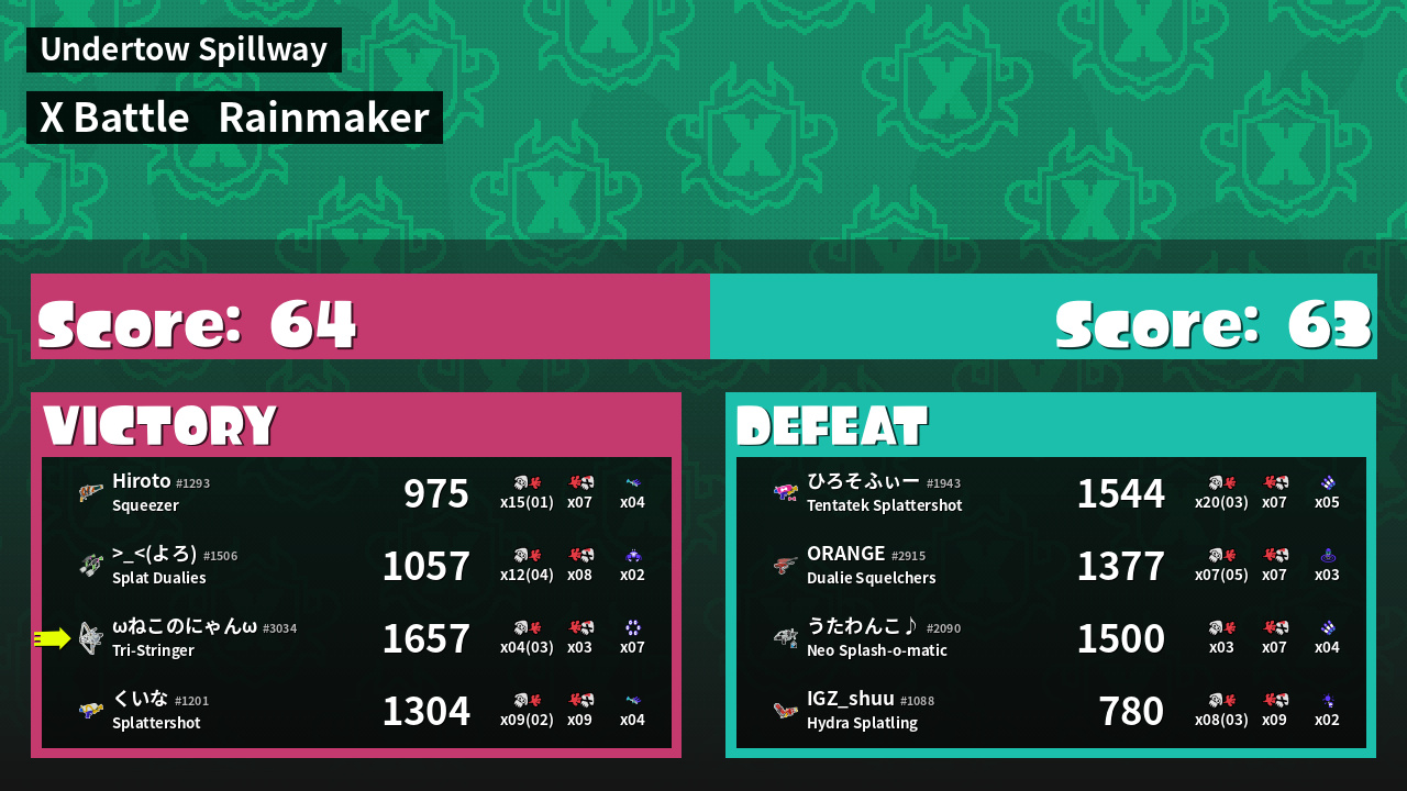 | Mode |    Rainmaker -   X Battle | ||