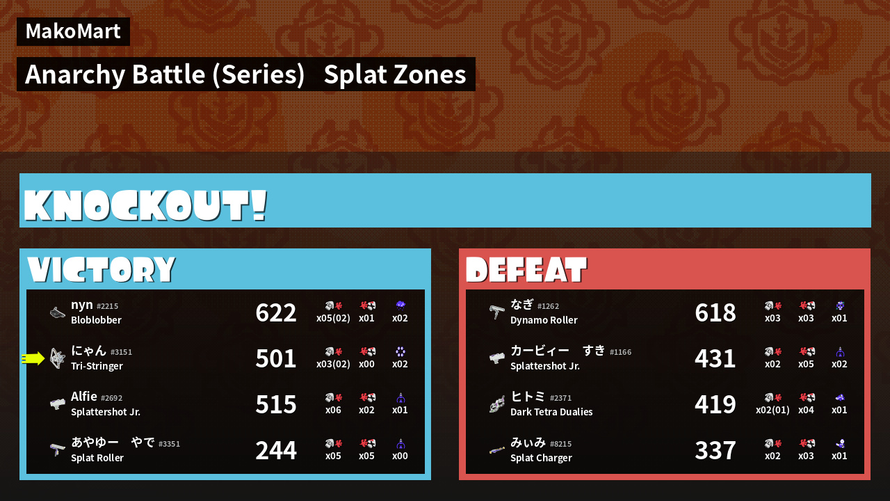 | Mode |    Splat Zones -   Anarchy Battle (Series) | ||