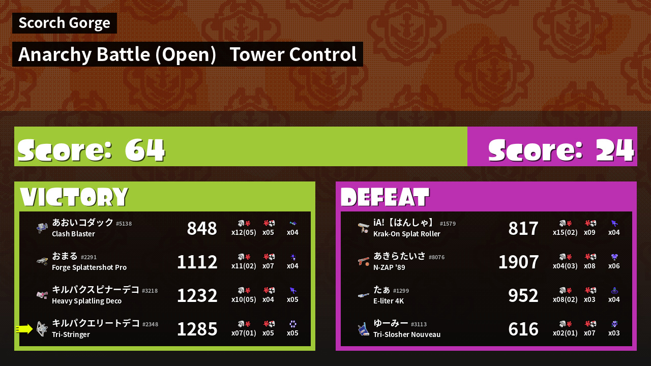 | Mode | Tower Control - Anarchy Battle (Open) | ||