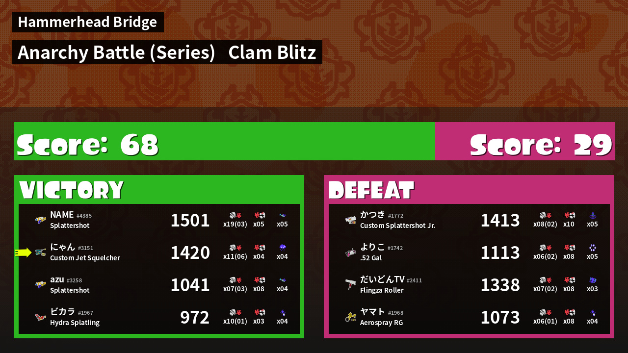 | Mode | Clam Blitz - Anarchy Battle (Series) | ||