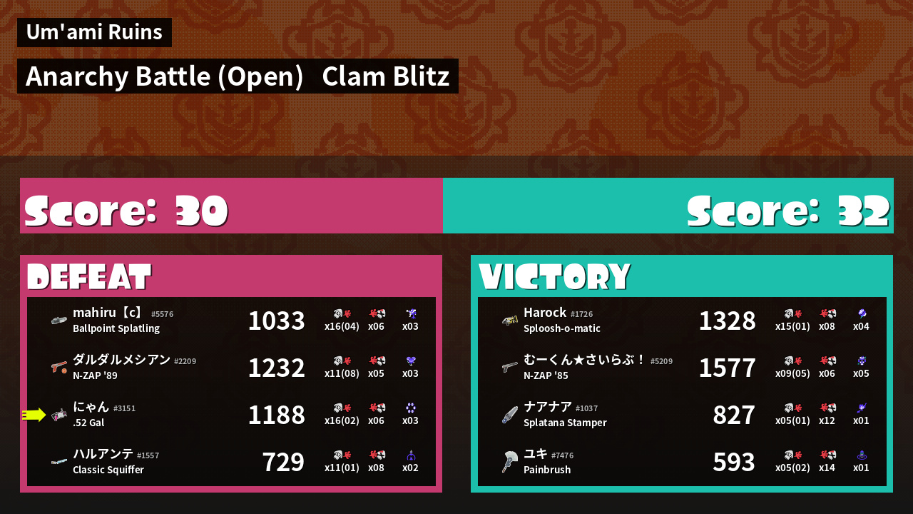 | Mode | Clam Blitz - Anarchy Battle (Open) | ||