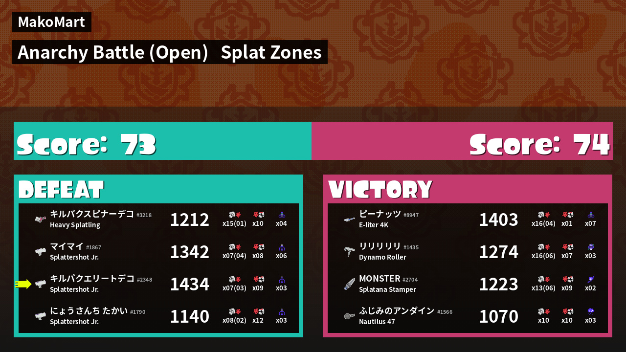 | Mode | Splat Zones - Anarchy Battle (Open) | ||