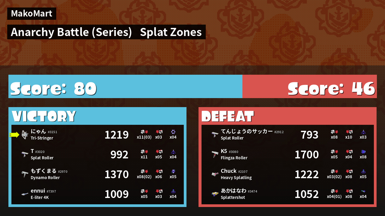 | Medals |   #1 Overall Splatter  #1 Splat Zone Guard  #1 Popular Target | ||