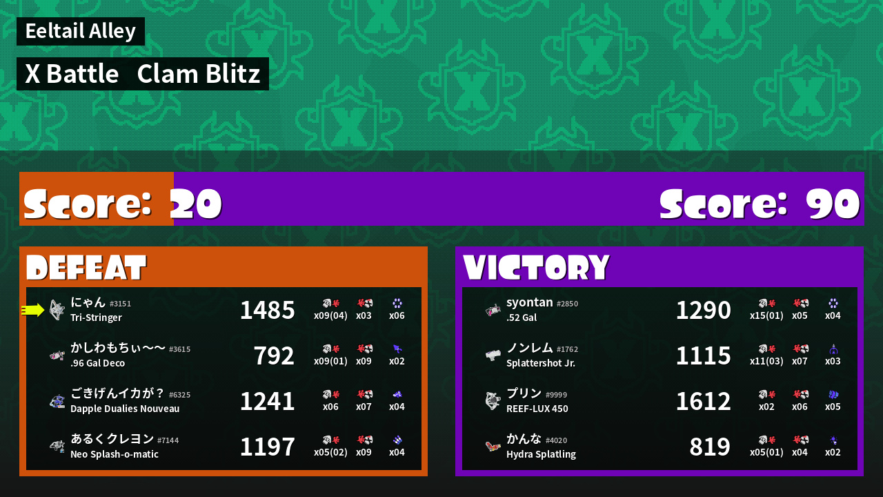 | Mode | Clam Blitz - X Battle | ||