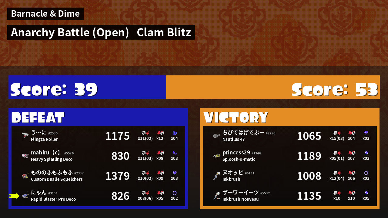 | Mode | Clam Blitz - Anarchy Battle (Open) | ||