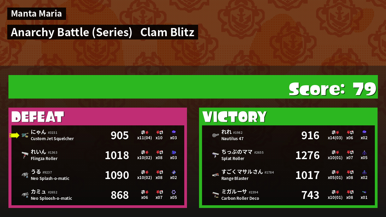 | Mode | Clam Blitz - Anarchy Battle (Series) | ||