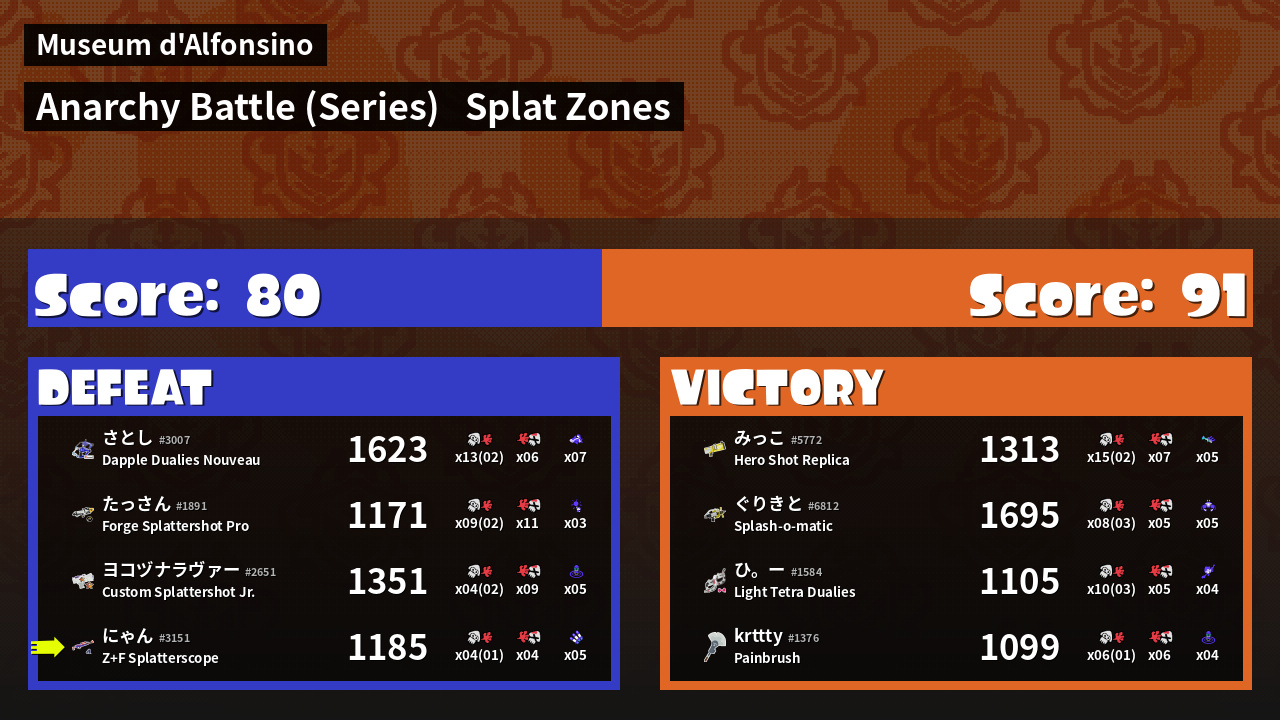 | Mode | Splat Zones - Anarchy Battle (Series) | ||