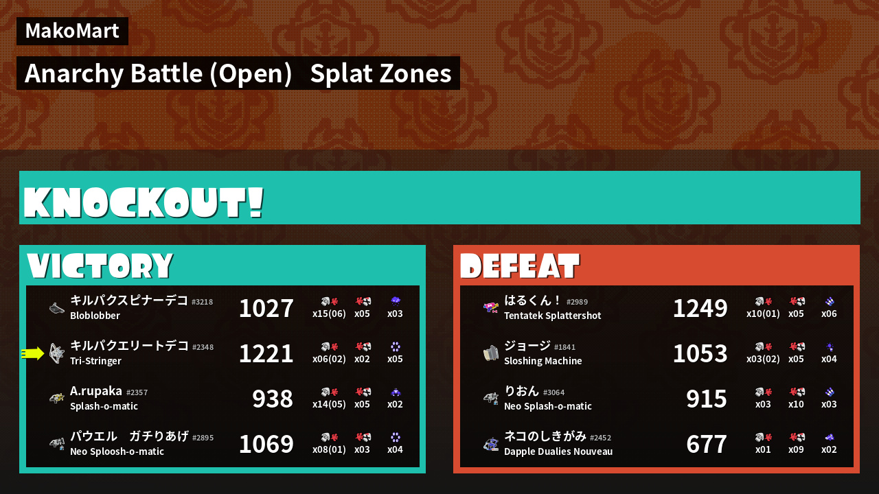 | Mode | Splat Zones - Anarchy Battle (Open) | ||