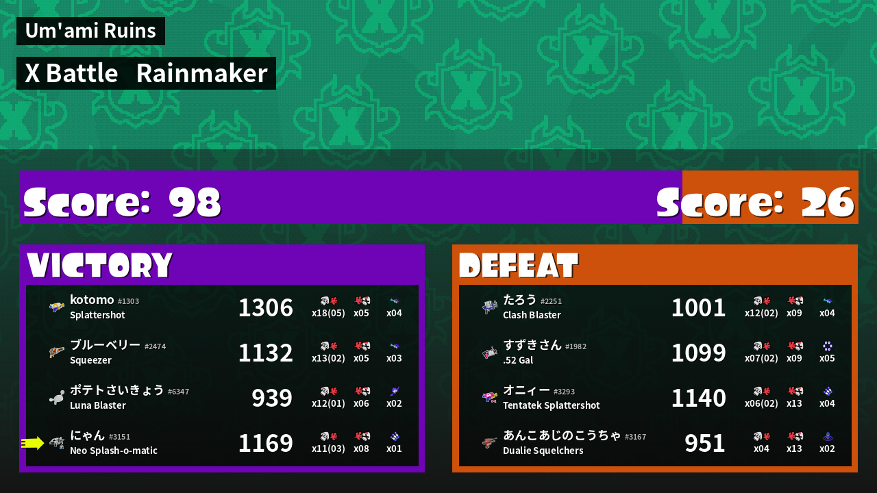 | Medals | #1 Super Jump Spot #2 Turf Inker #2 Splat Assister | ||