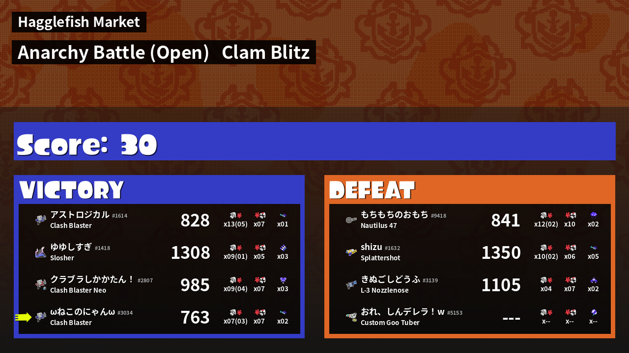 | Mode | Clam Blitz - Anarchy Battle (Open) | ||