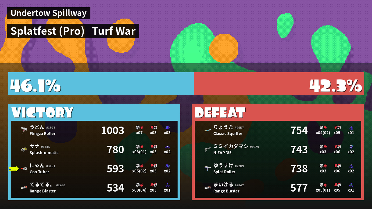 | Mode | Turf War - Splatfest (Pro) | ||