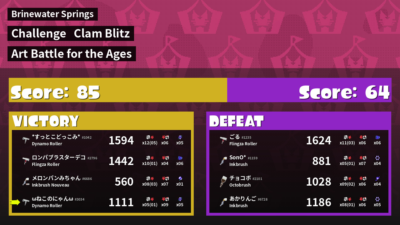 | Weapon | Dynamo Roller ( Sprinkler / Tacticooler) | ||