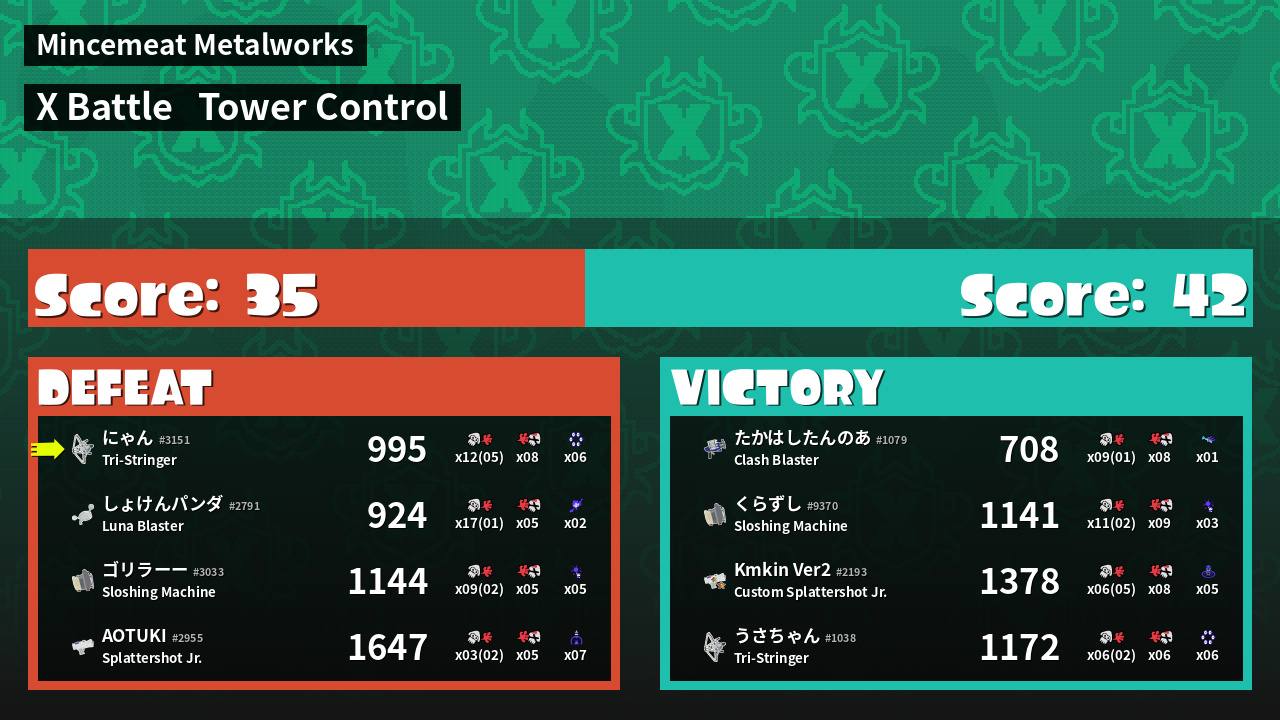 | Mode | Tower Control - X Battle | ||