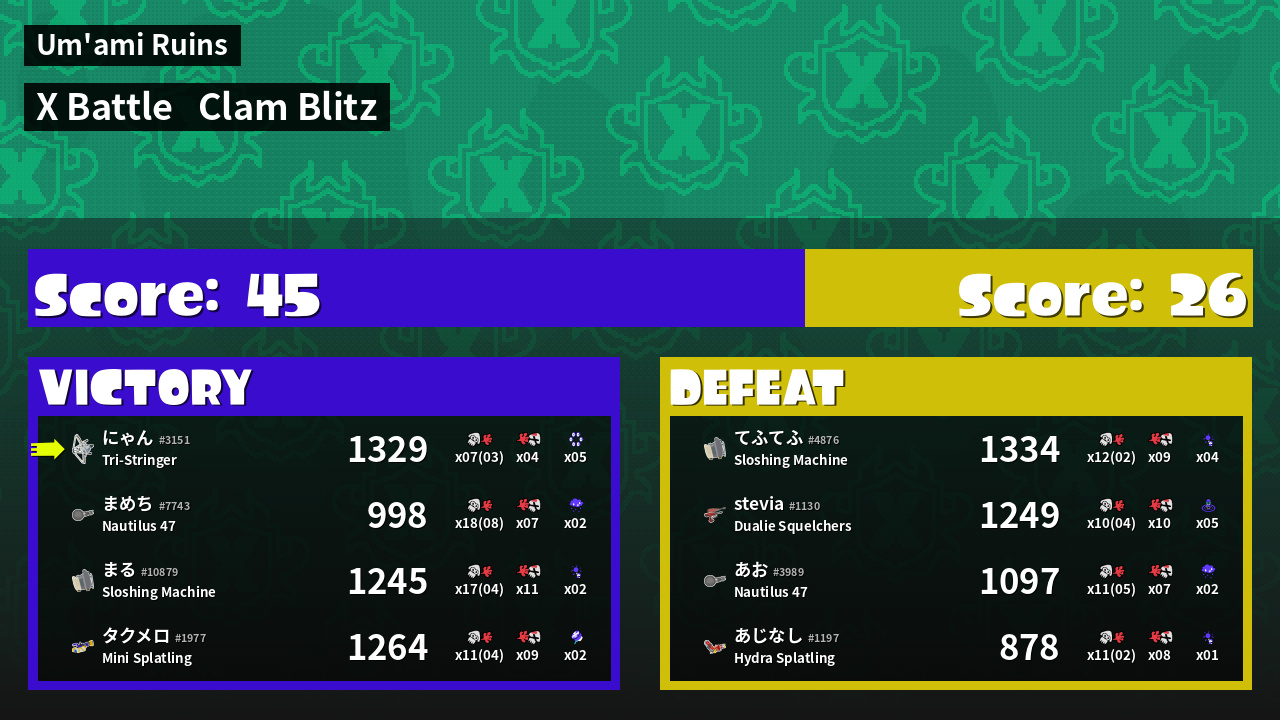 | Mode | Clam Blitz - X Battle | ||