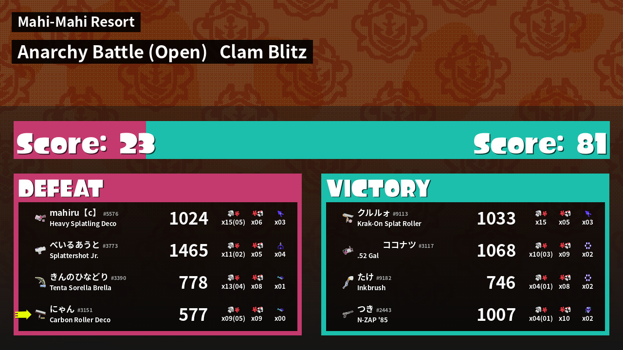 | Mode | Clam Blitz - Anarchy Battle (Open) | ||