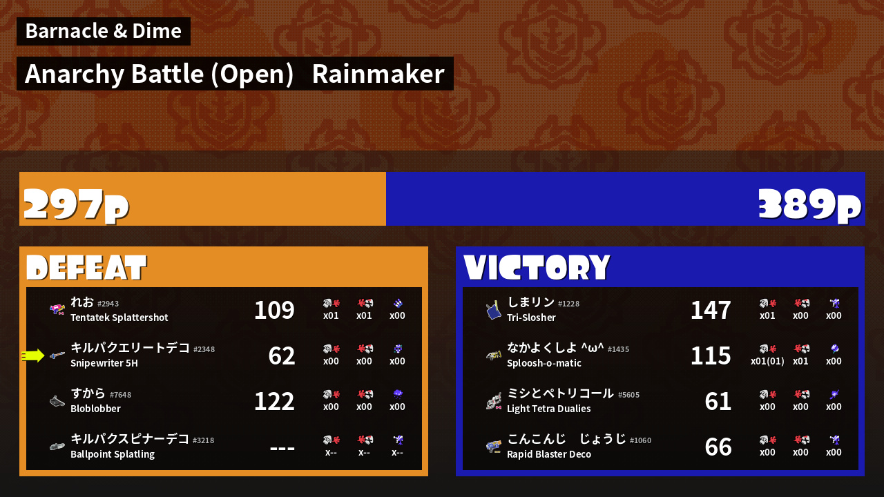 | Mode | Rainmaker - Anarchy Battle (Open) | ||