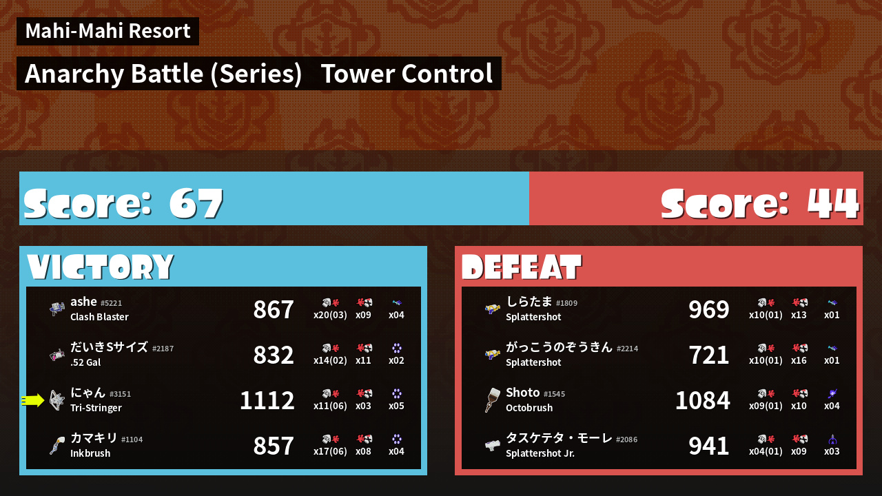 | Mode | Tower Control - Anarchy Battle (Series) | ||
