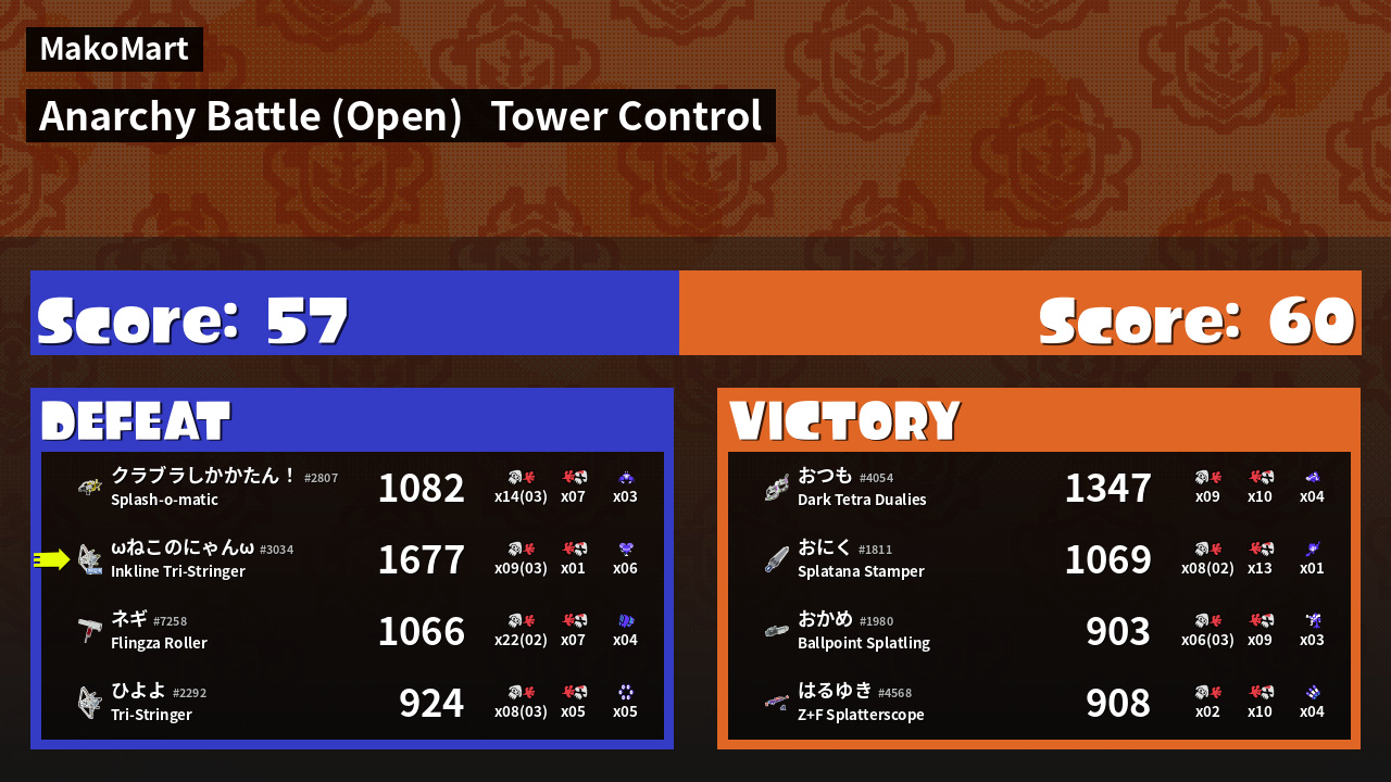 | Mode | Tower Control - Anarchy Battle (Open) | ||