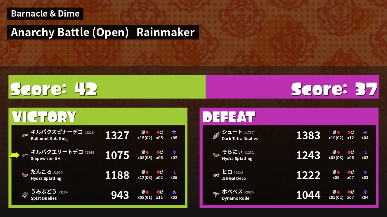 | Mode | Rainmaker - Anarchy Battle (Open) | ||