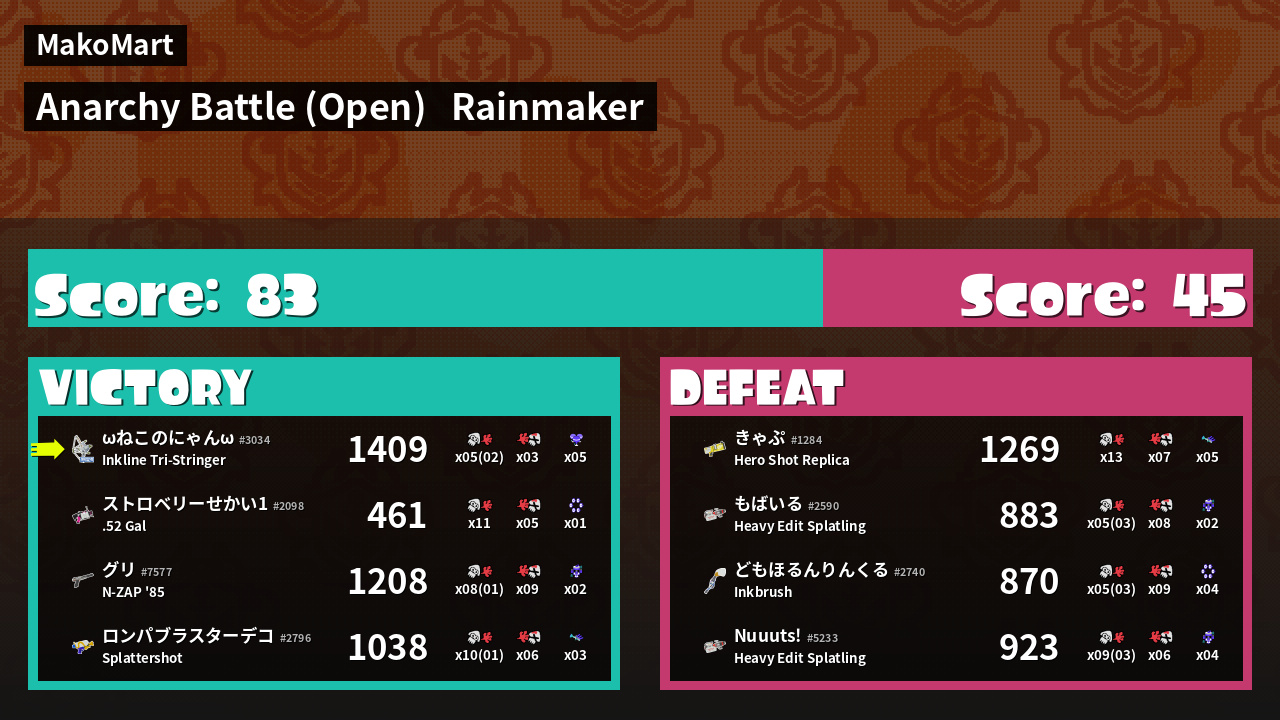 | Mode | Rainmaker - Anarchy Battle (Open) | ||