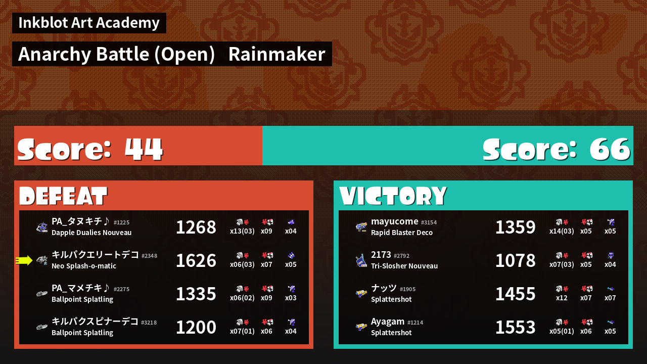 | Mode | Rainmaker - Anarchy Battle (Open) | ||