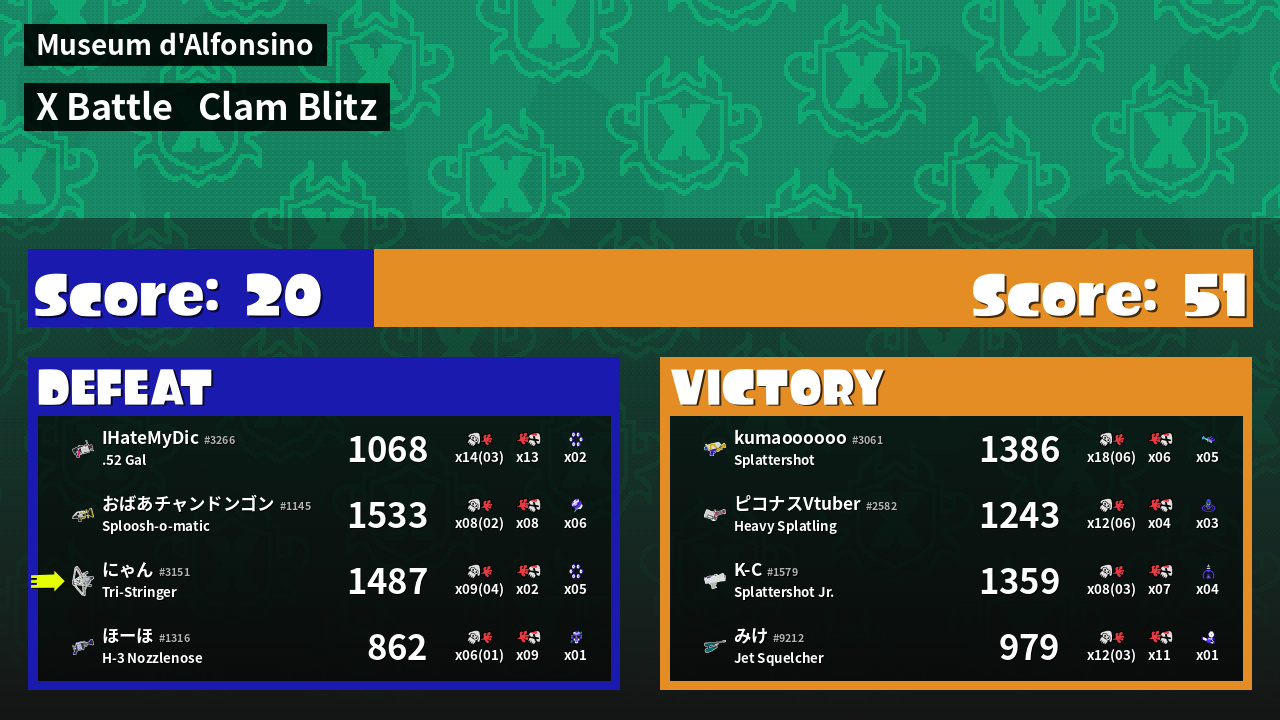 | Medals | #1 Splat Assister #1 Ink Consumer #1 Killer Wail 5.1 User | ||