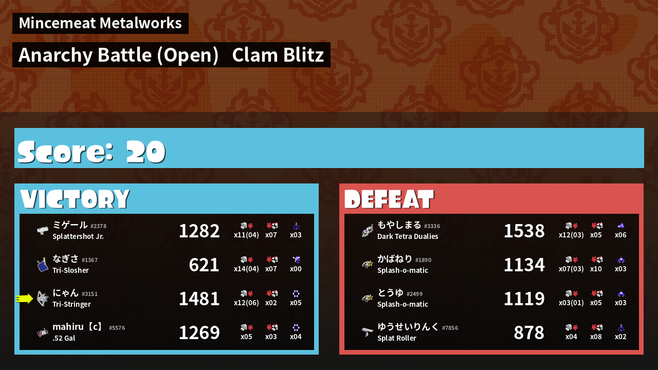 | Mode |    Clam Blitz -   Anarchy Battle (Open) | ||