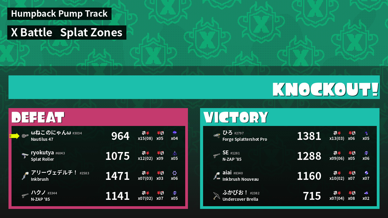 | Medals | #1 Overall Splatter #1 Splat Zone Guard #1 Super Jump Spot | ||