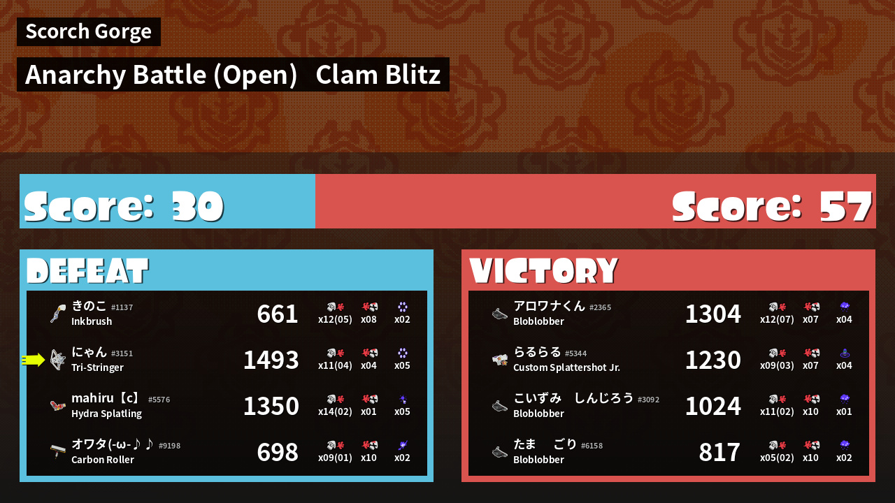 | Mode | Clam Blitz - Anarchy Battle (Open) | ||