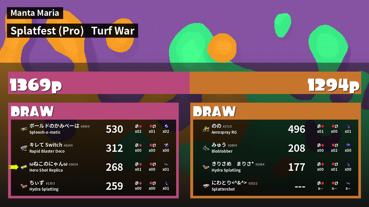 | Mode | Turf War - Splatfest (Pro) | ||