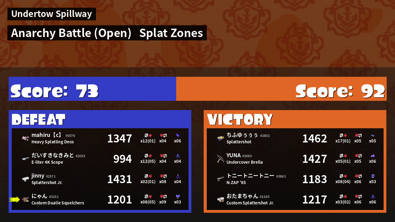 | Mode |    Splat Zones -   Anarchy Battle (Open) | ||