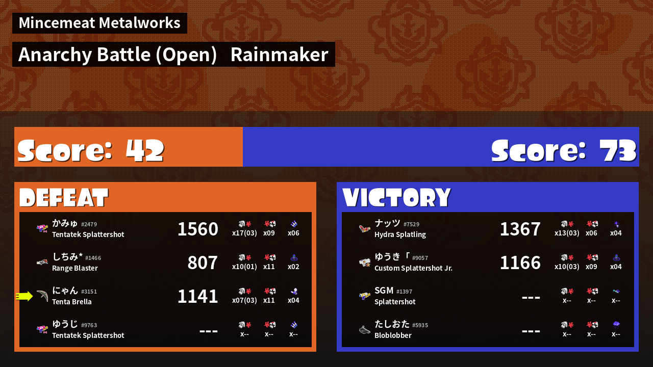 | Mode | Rainmaker - Anarchy Battle (Open) | ||