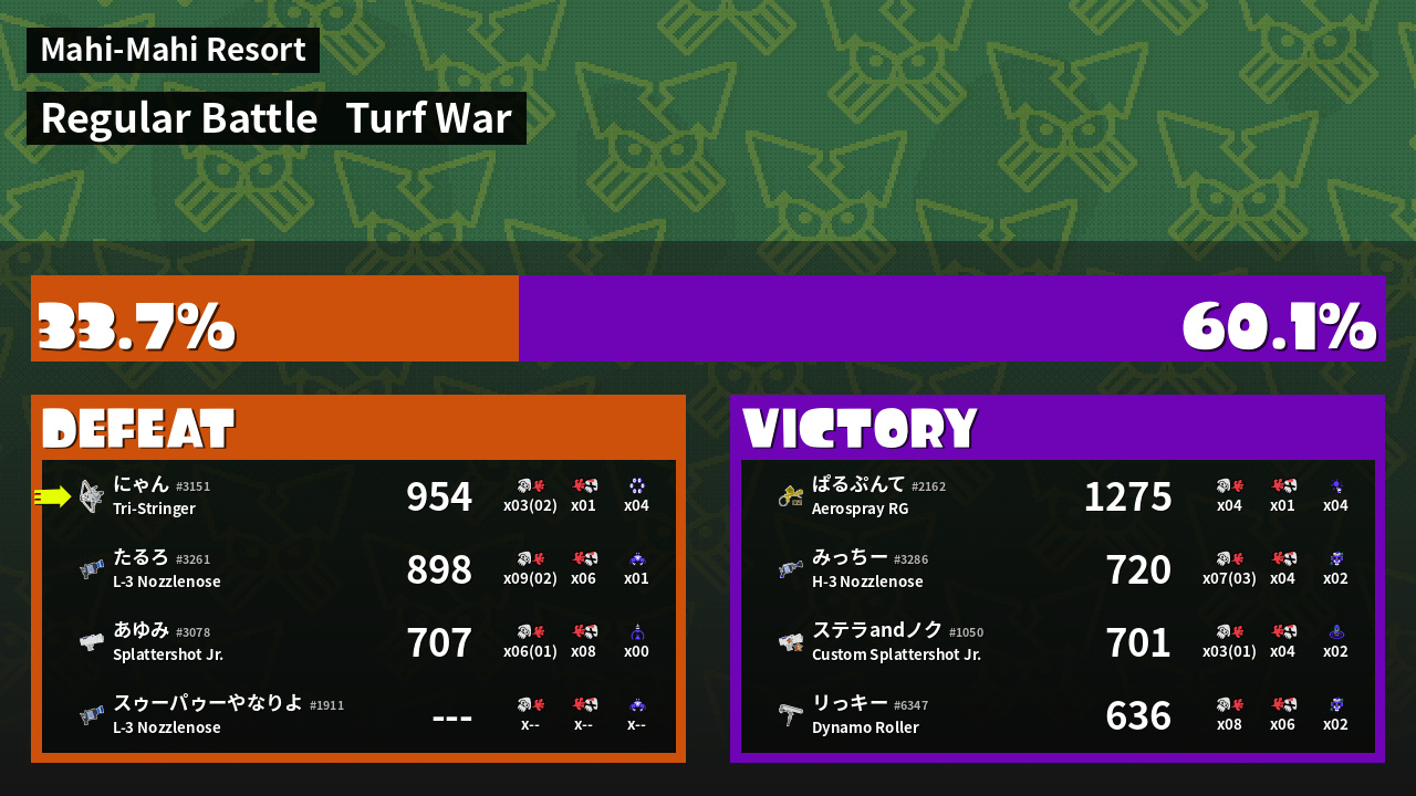 | Mode | Turf War - Regular Battle | ||