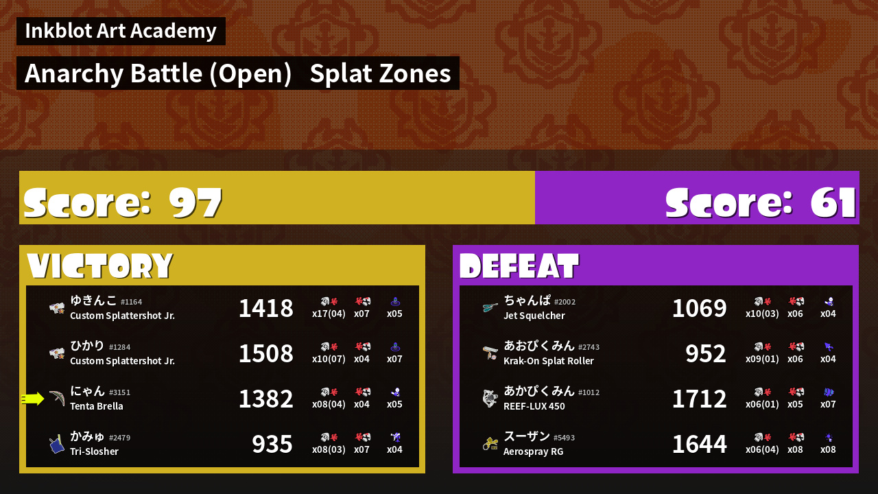 | Mode |    Splat Zones -   Anarchy Battle (Open) | ||