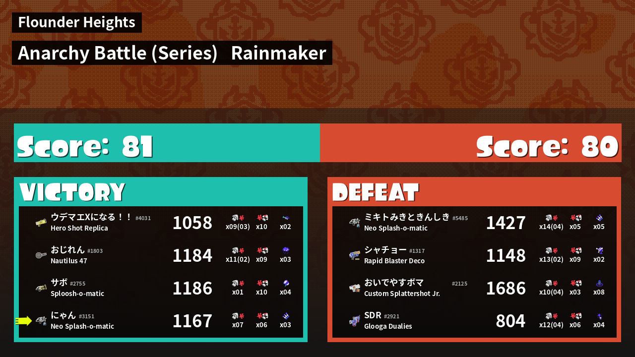 | Mode | Rainmaker - Anarchy Battle (Series) | ||
