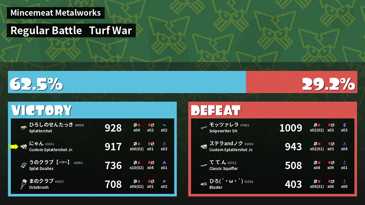 | Mode | Turf War - Regular Battle | ||