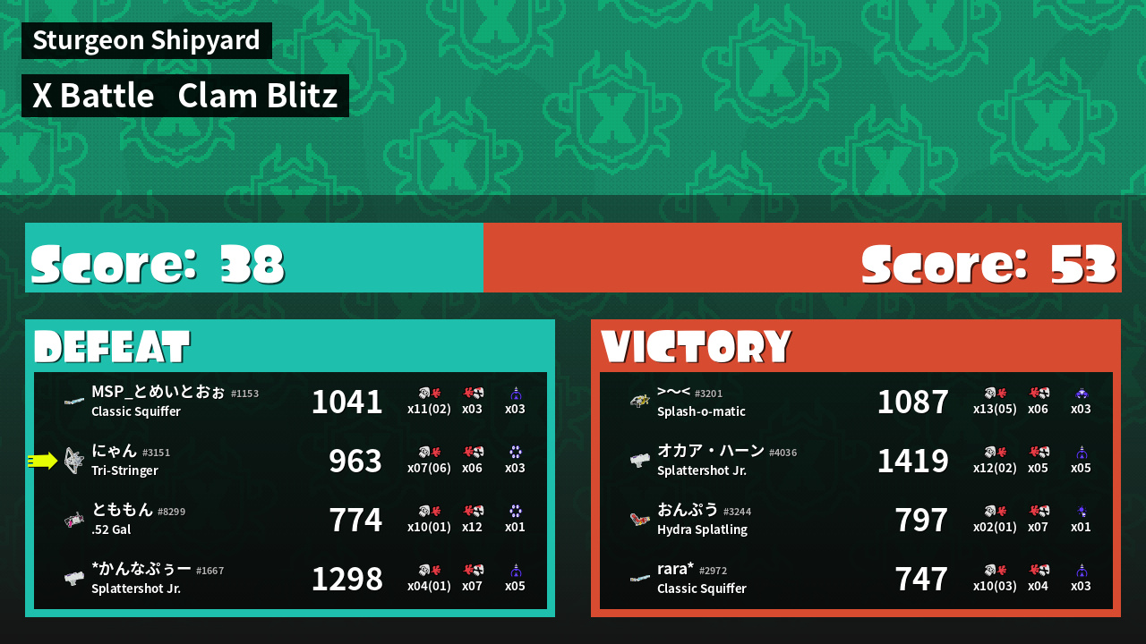 | Medals | #1 Clam Carrier #1 Super Jump Spot #1 Splat Assister | ||