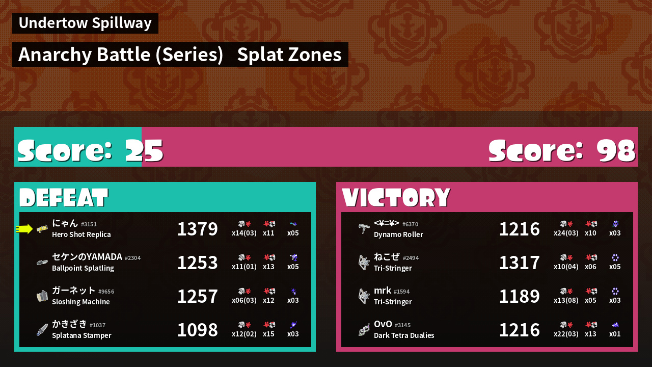 | Mode | Splat Zones - Anarchy Battle (Series) | ||