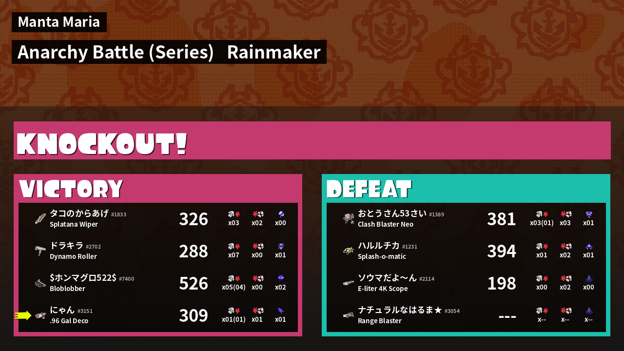 | Mode |    Rainmaker -   Anarchy Battle (Series) | ||