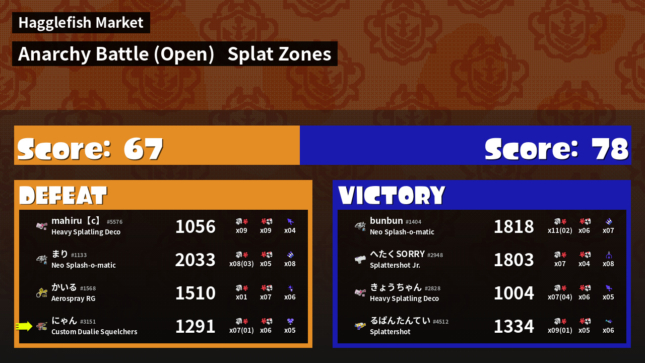 | Mode | Splat Zones - Anarchy Battle (Open) | ||