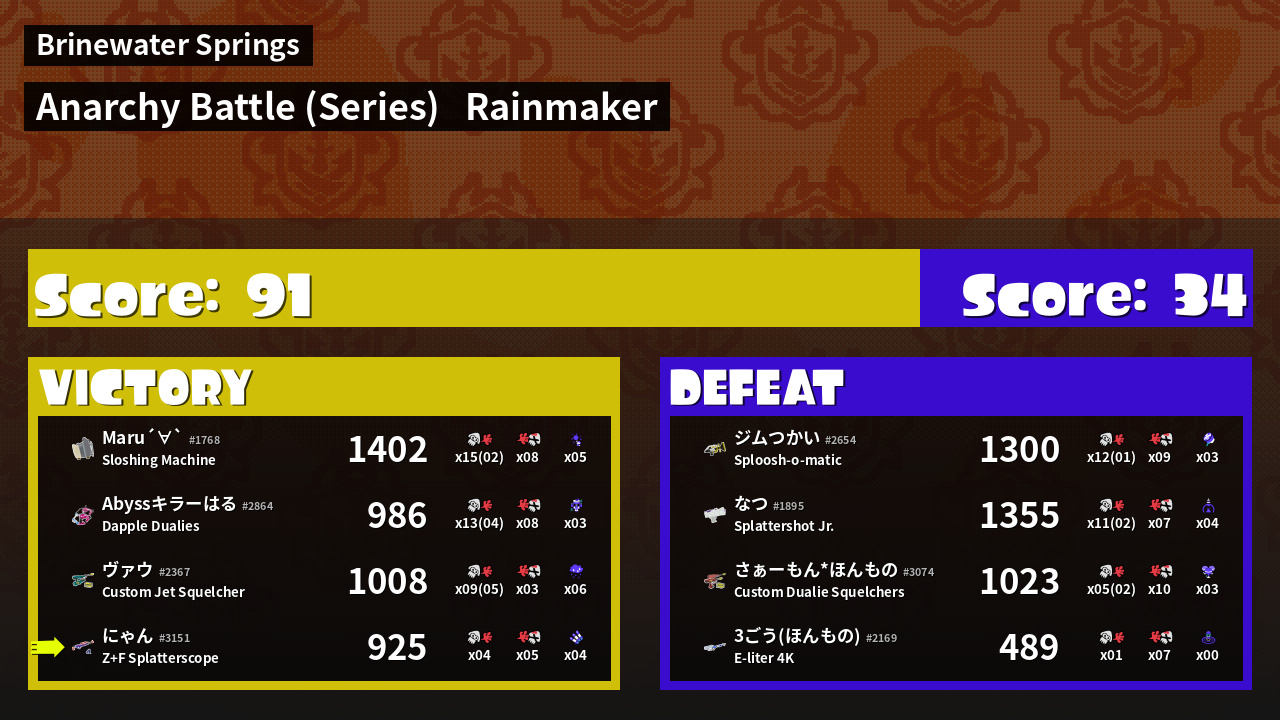 | Mode | Rainmaker - Anarchy Battle (Series) | ||