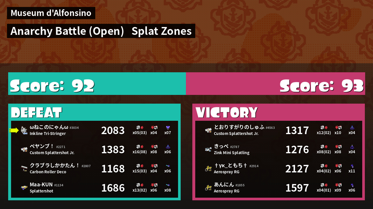 | Mode |  Splat Zones -  Anarchy Battle (Open) | ||