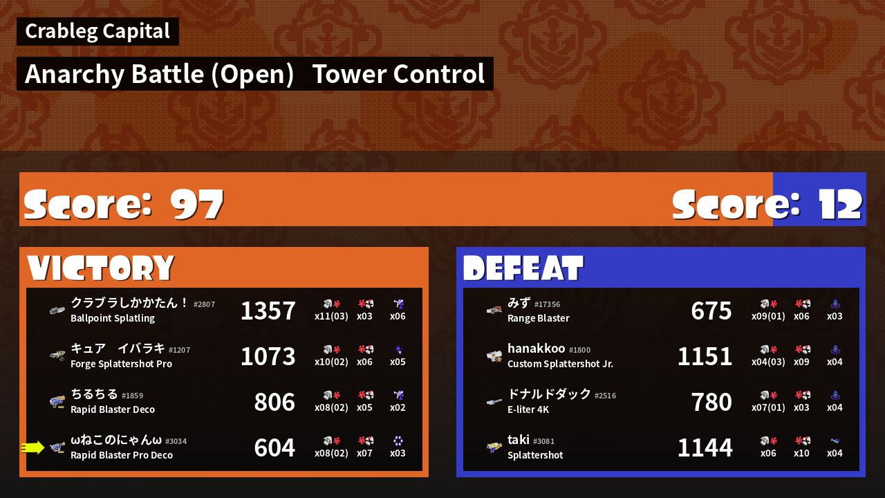 | Mode | Tower Control - Anarchy Battle (Open) | ||