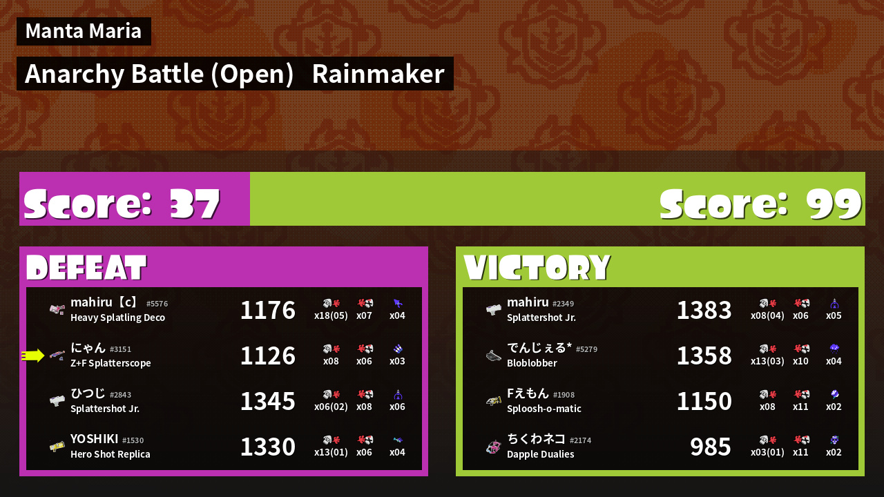 | Mode |    Rainmaker -   Anarchy Battle (Open) | ||